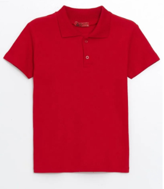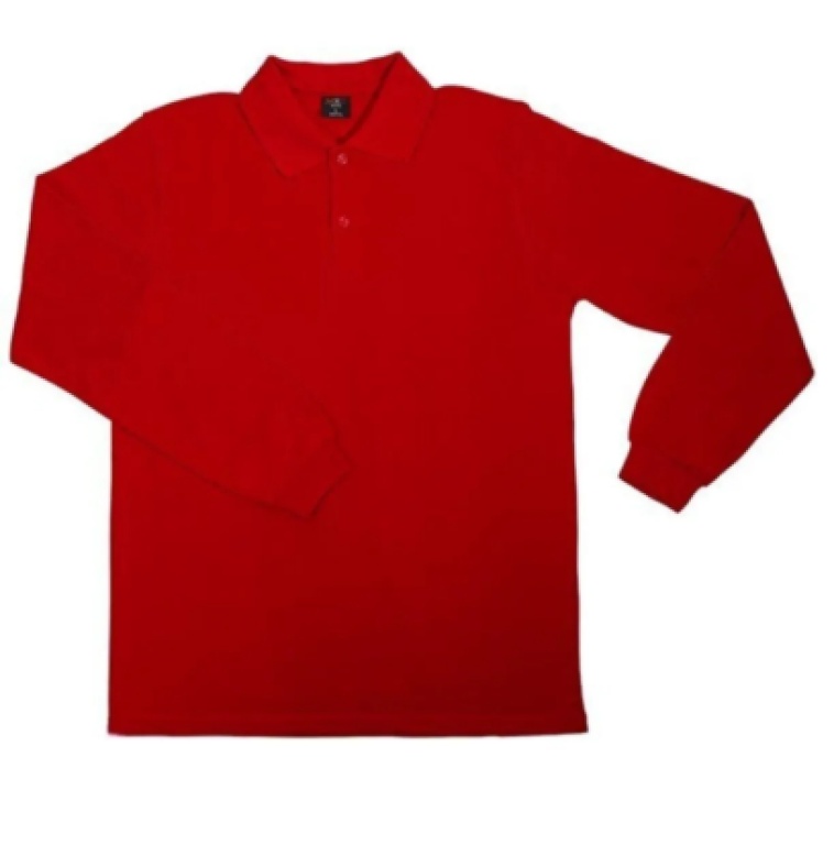 Polo yaka, kısa veya uzun kollu kırmızı renk tişört